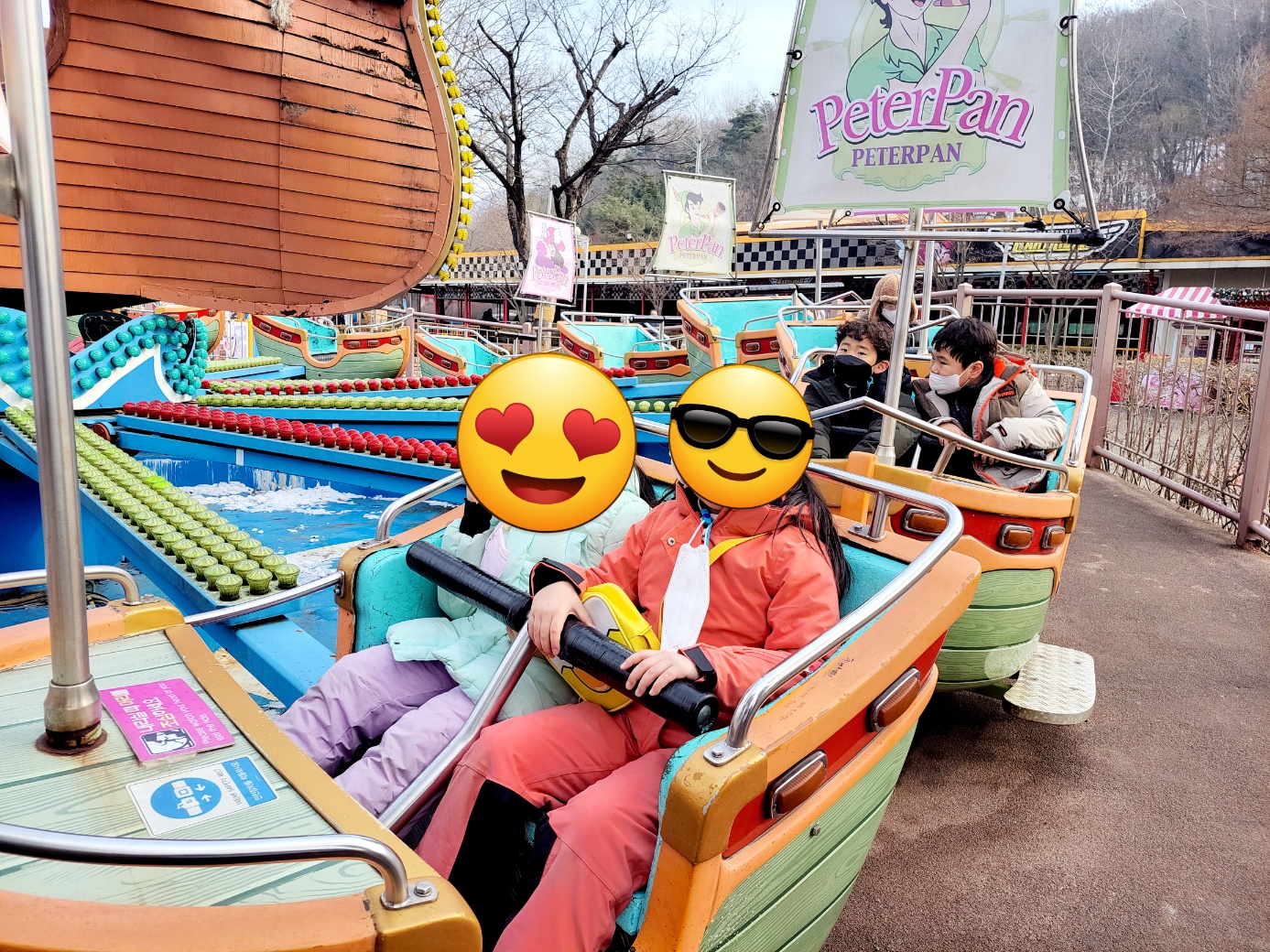 오전에 눈썰매 2번정도 타고, 빙어낚시 체험 및 점심식사한 후 2시부터 저녁8시까지 놀이동산에서 놀았으니