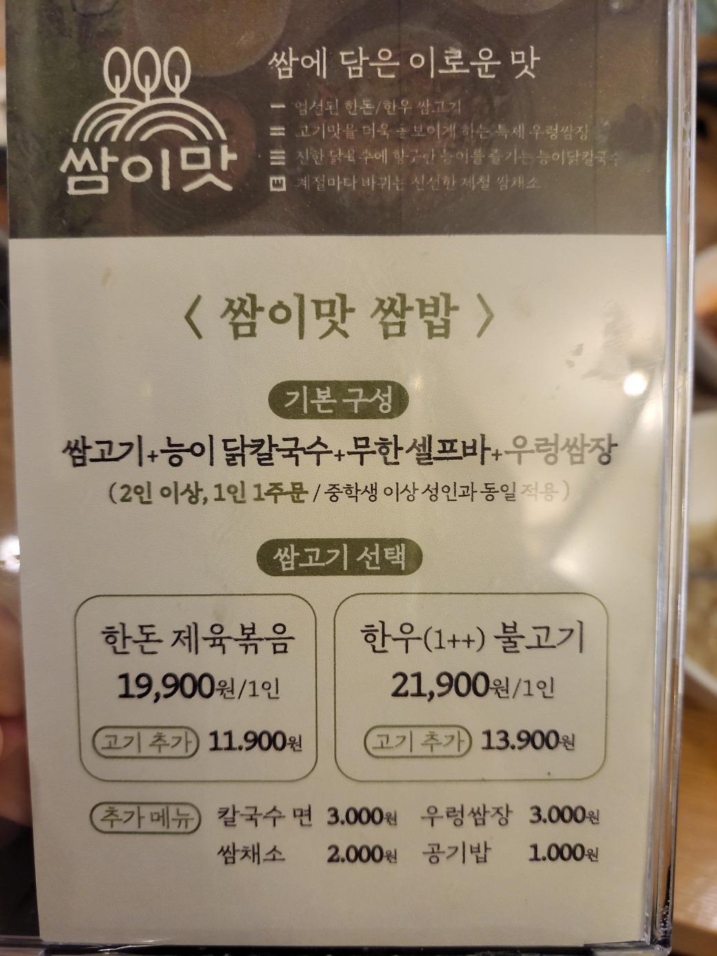 추천하고 싶은 맛집은 바로 '쌈이맛'이라는 식당입니다.