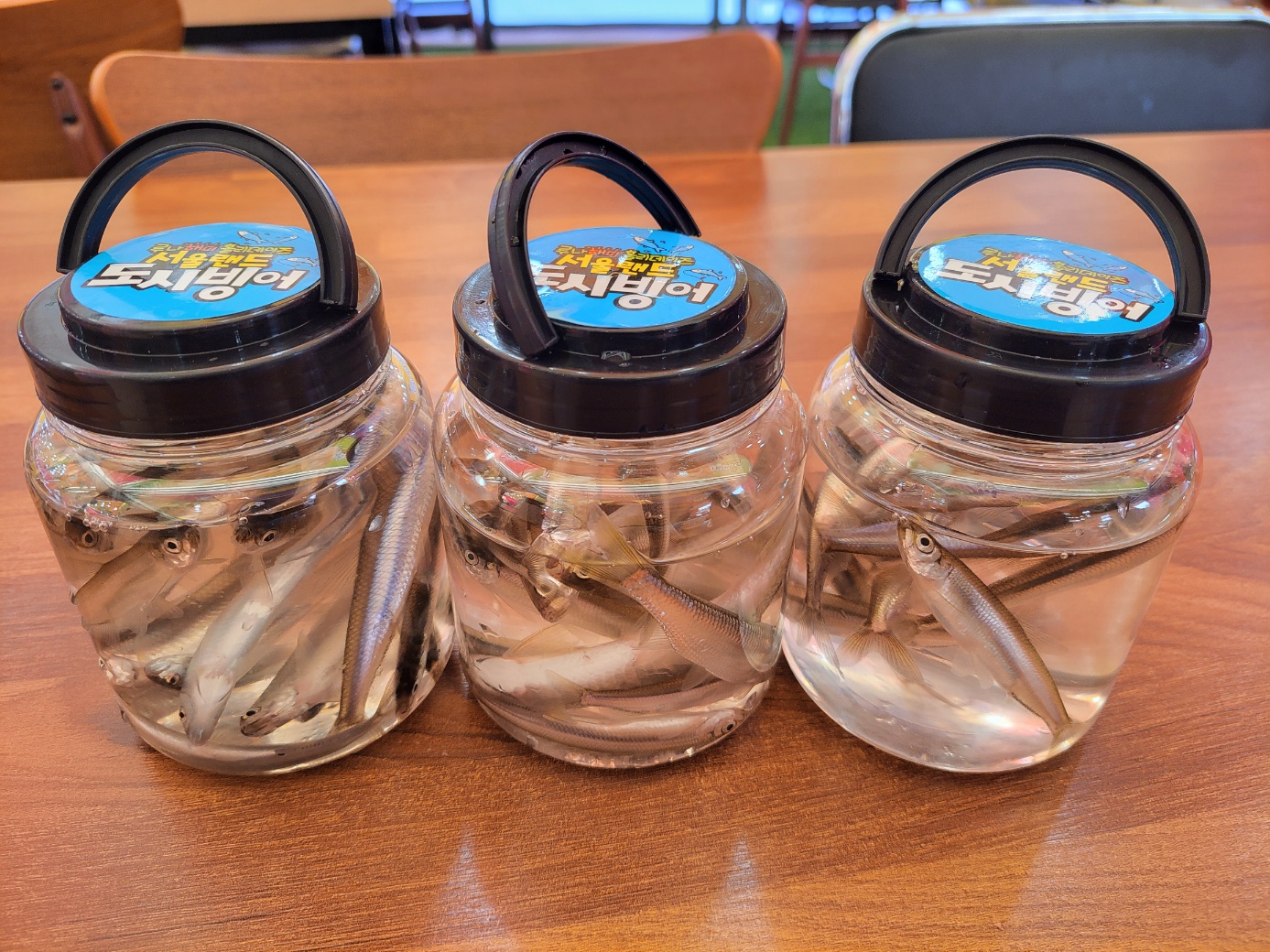 20분동안 잡는 건데, 죽어있는 빙어는 잡지 않게 했어요. 나중에 빙어튀김을 먹기 위해서요.^^