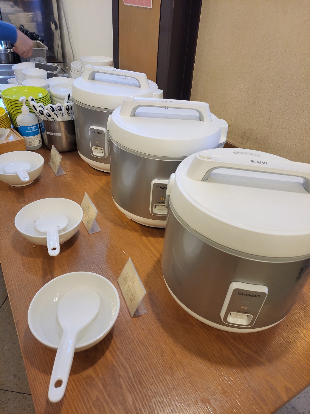 밥도 종류별로 비치되어 있는데, 밥은 얼마든지 더 먹을 수 있습니다.