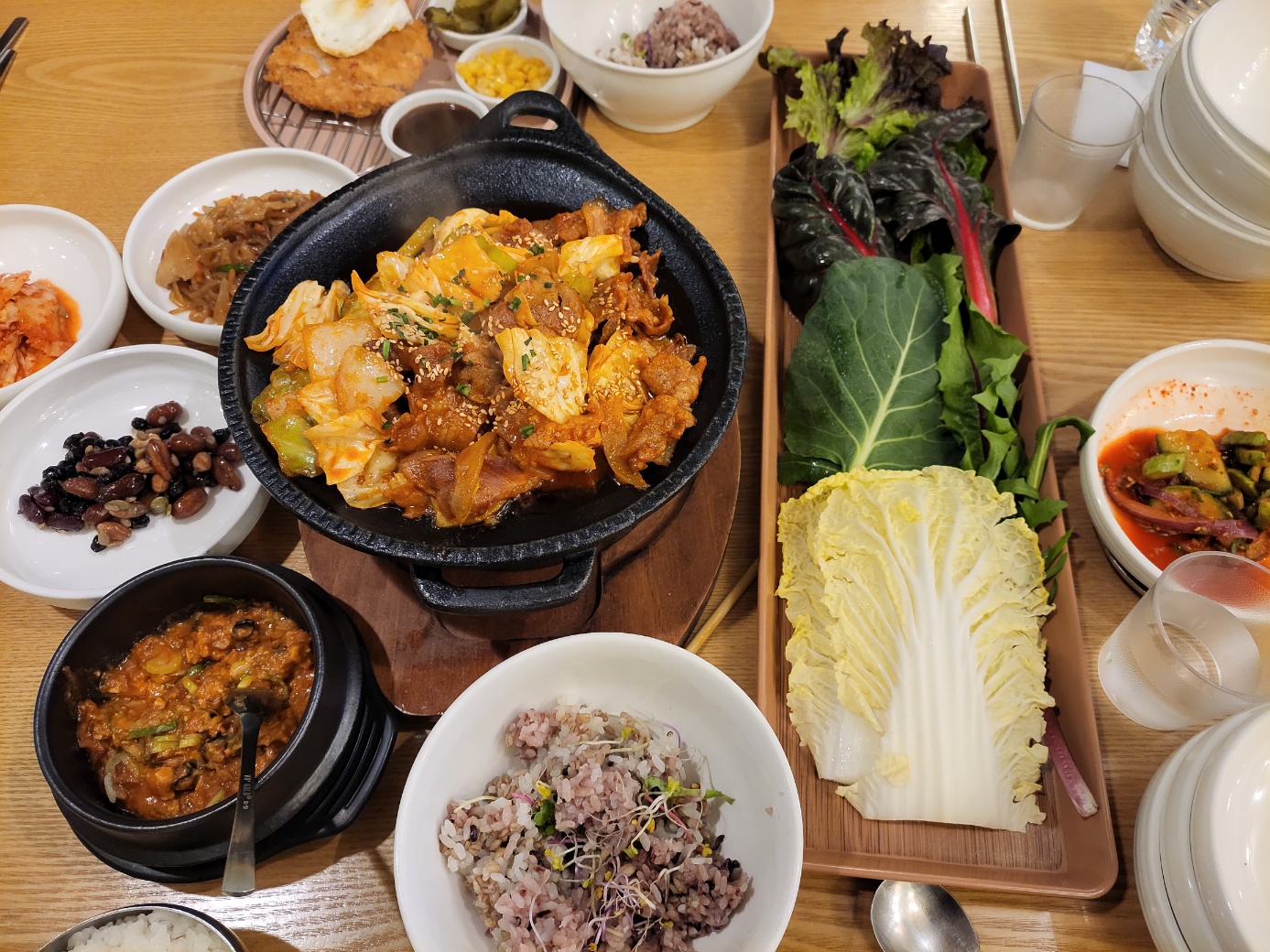 제육볶음인 그릴에 나와서 너무 좋았고, 쌈장에 능이버섯이 들어간 칼국수의 국물은 일품이었어요.^^