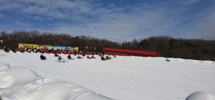 눈썰매장은 일반슬로프(120m)와 유아슬로프(50m)로 나뉘어져 있습니다.