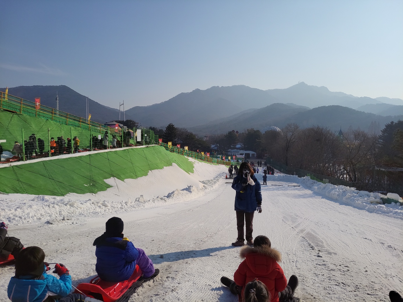 집과 한시간 거리인 서울랜드로 정한 이유는 눈썰매장에 내장객들이 많아서 줄서서 타는게 아이들에게는 지루할 수 있어